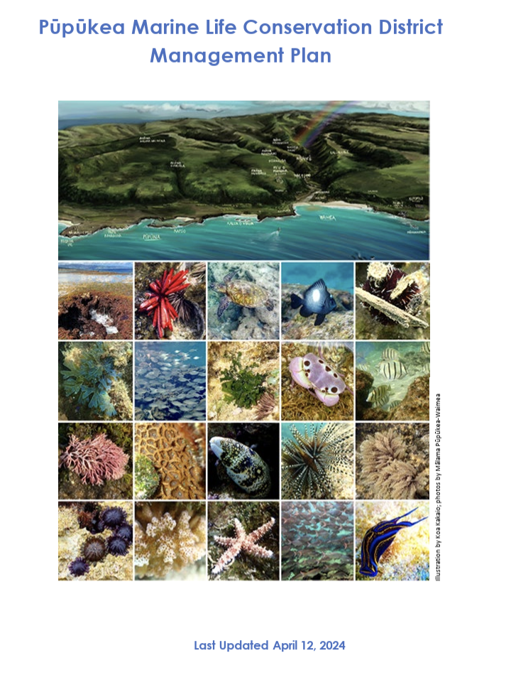 In 2024, the Hawaiʻi Department of Land and Natural Resources published the first-ever Management Plan for the Pūpūkea MLCD. It is also the first such plan for any MLCD in Hawaiʻi. Read the comprehensive 142-page plan here.